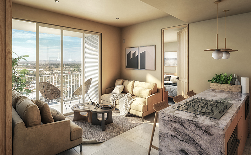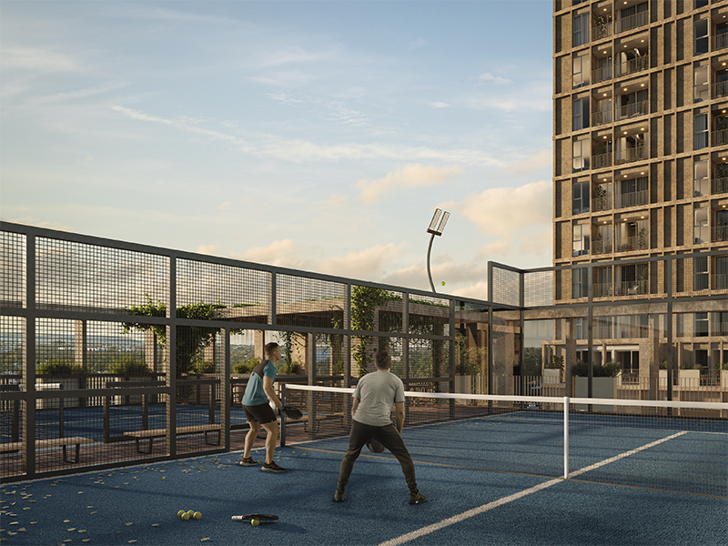 Apartamentos, comercio y actividad urbana al aire libre en un mismo lugar (alberca, cancha de pádel, gym, cancha de pikle ball, sky bar, sola de yoga y otras amenidades).